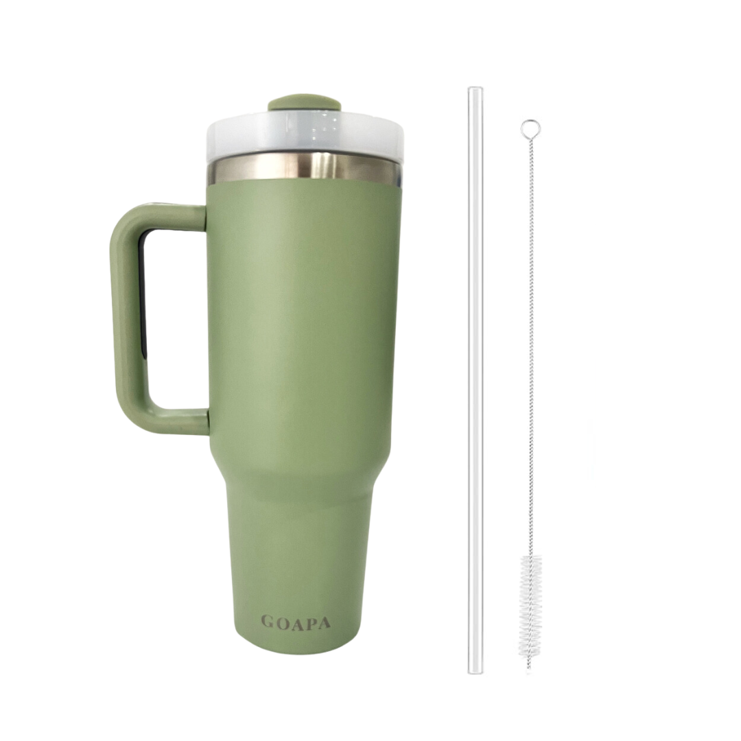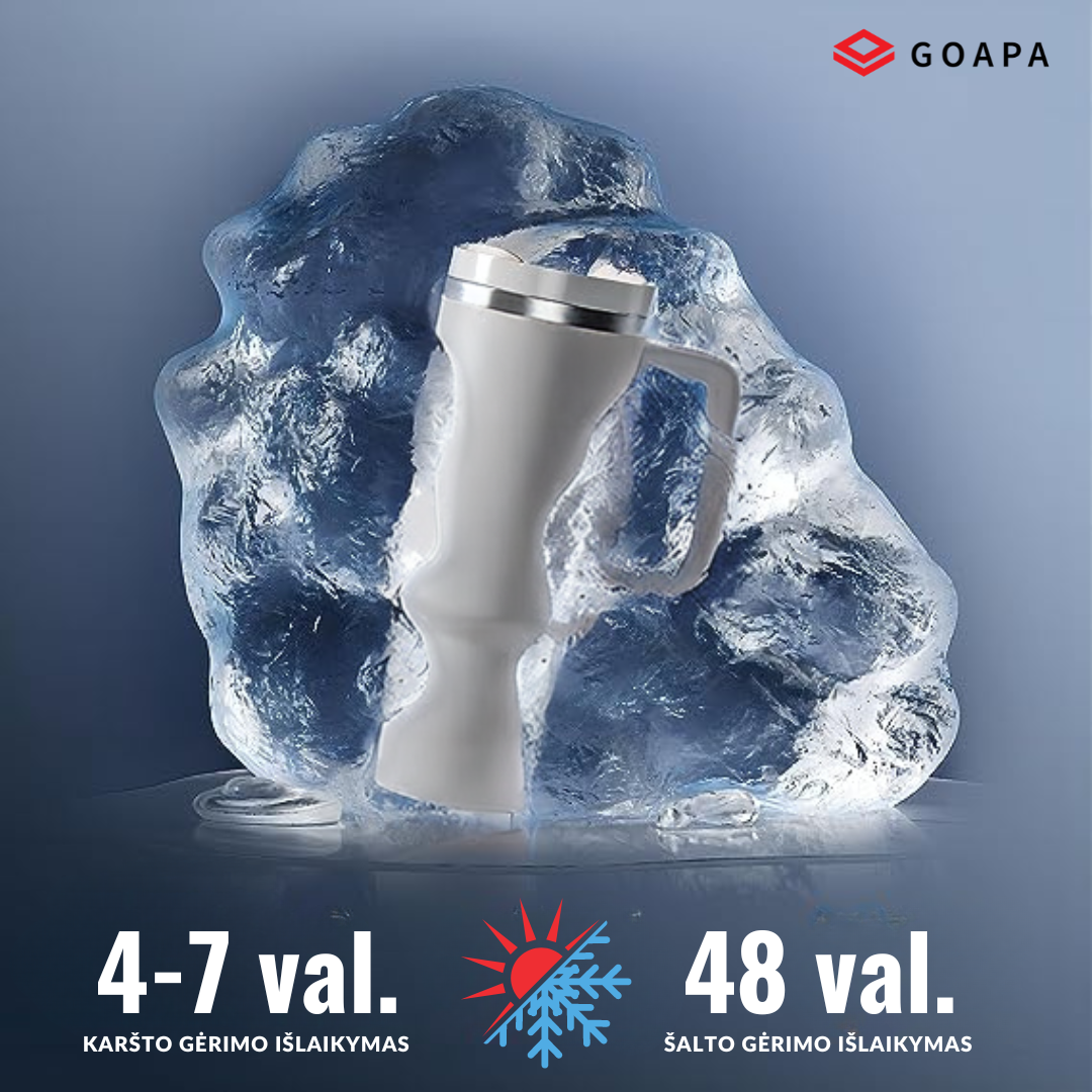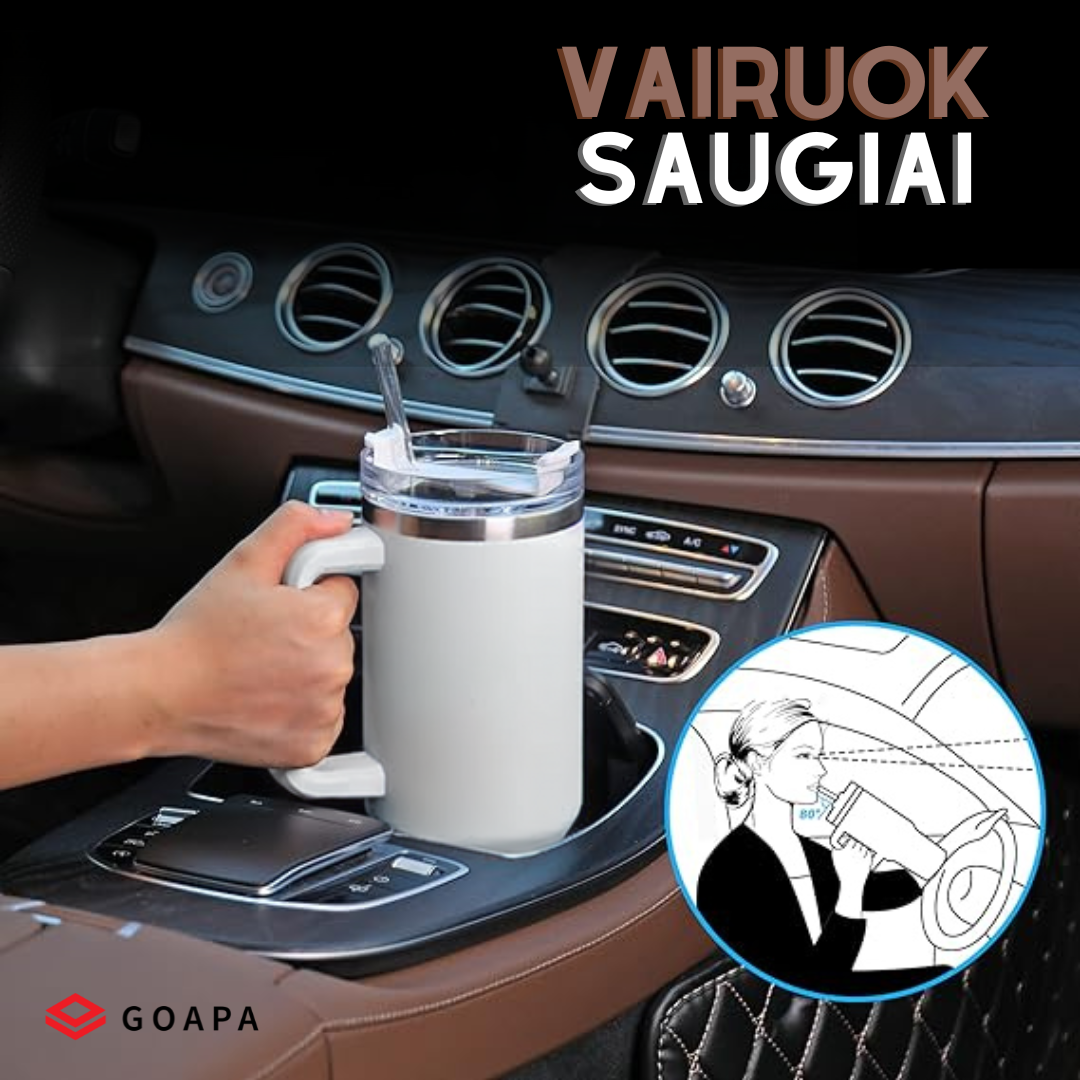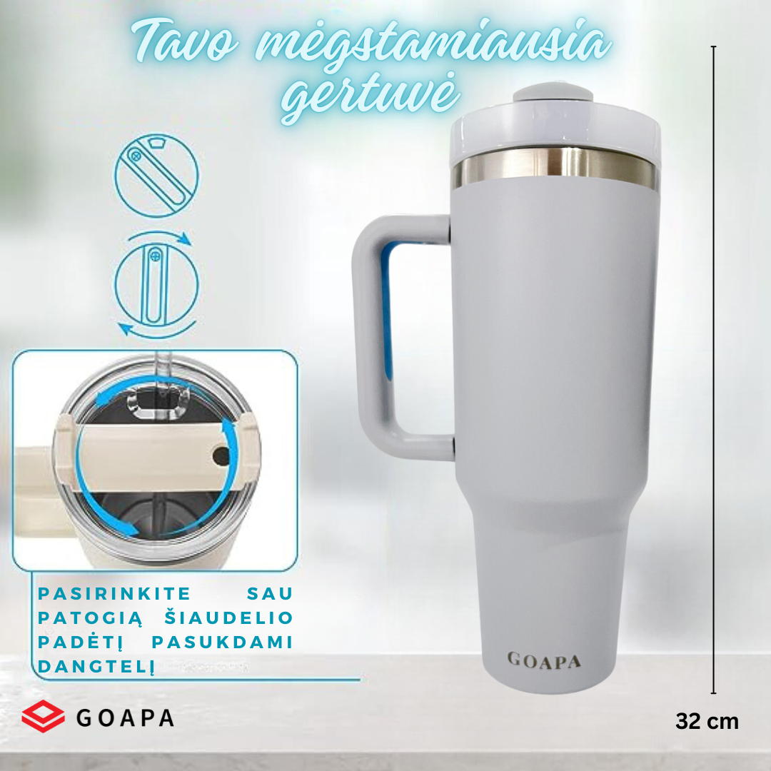 Metalinė daugiafunkcinė termo gertuvė su rankena ir šiaudeliu – GOAPA: